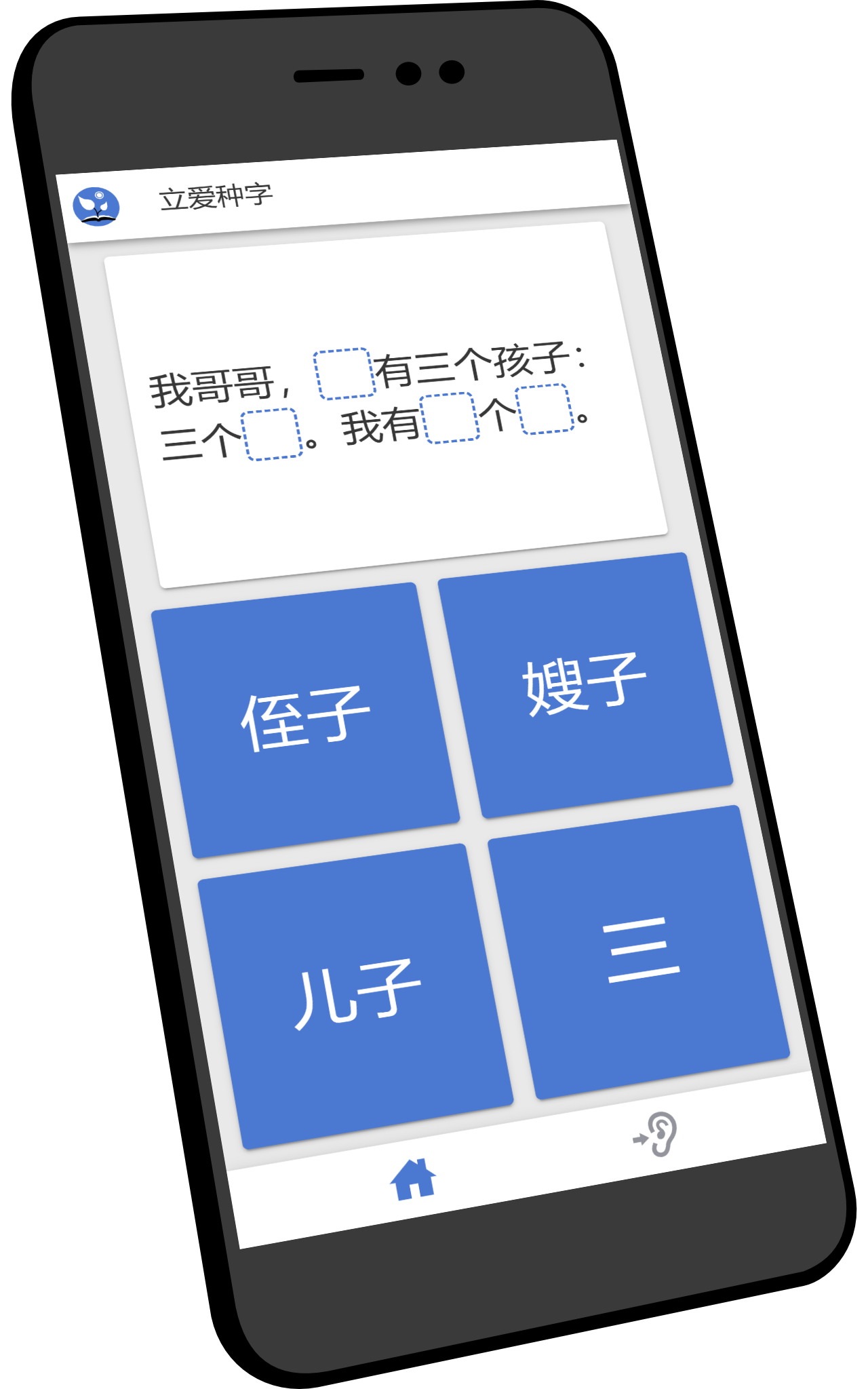 Listen to the pronunciation and tap the corresponding word-tile among multiple alternatives